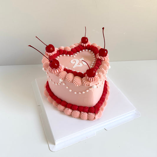 Simple Retro Cursive Heart Cake