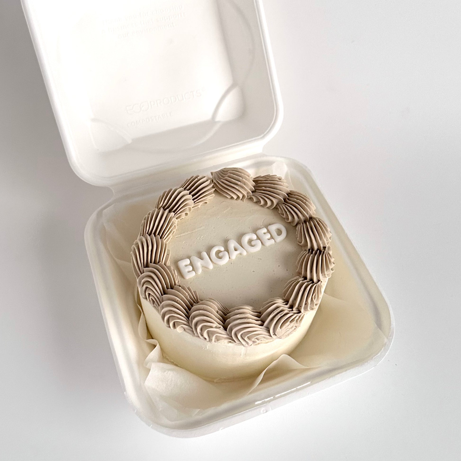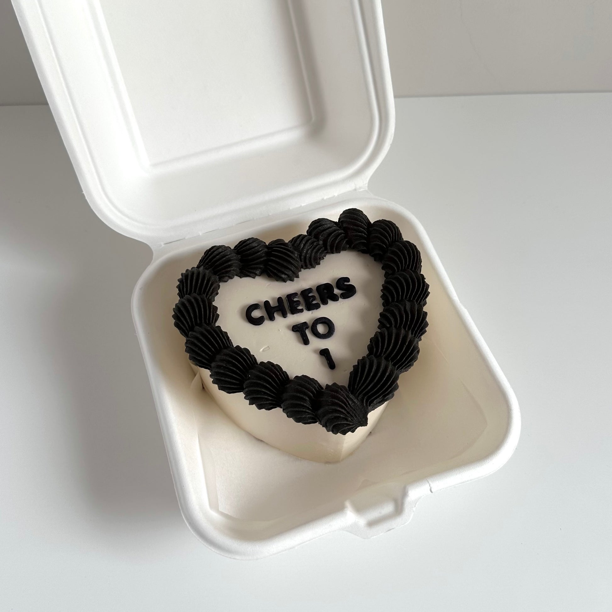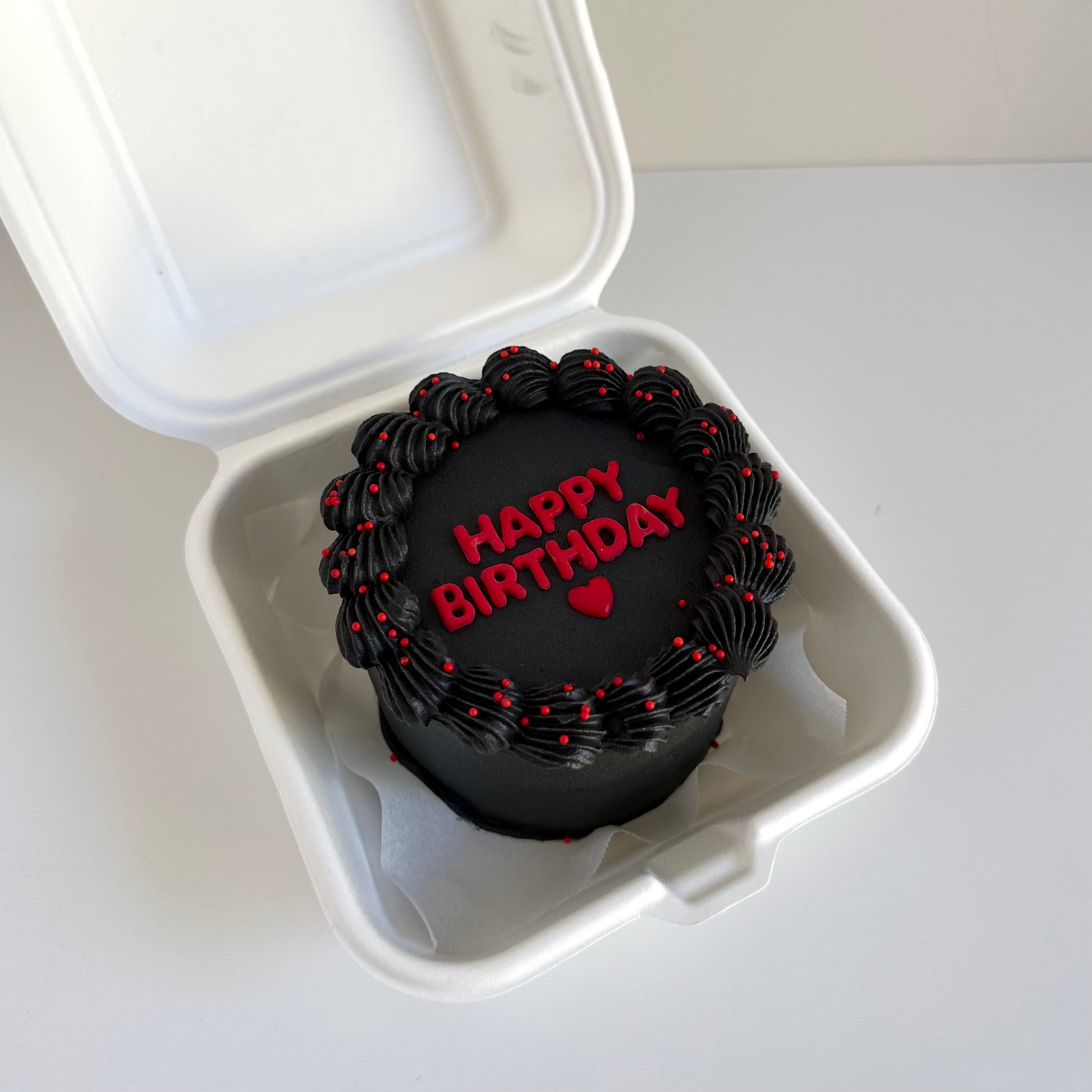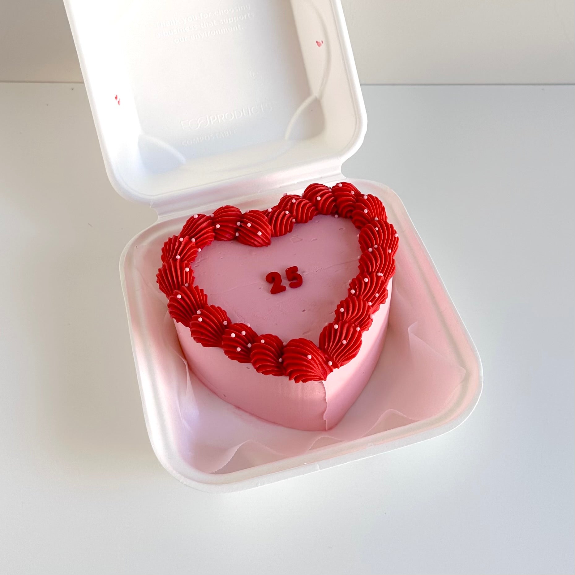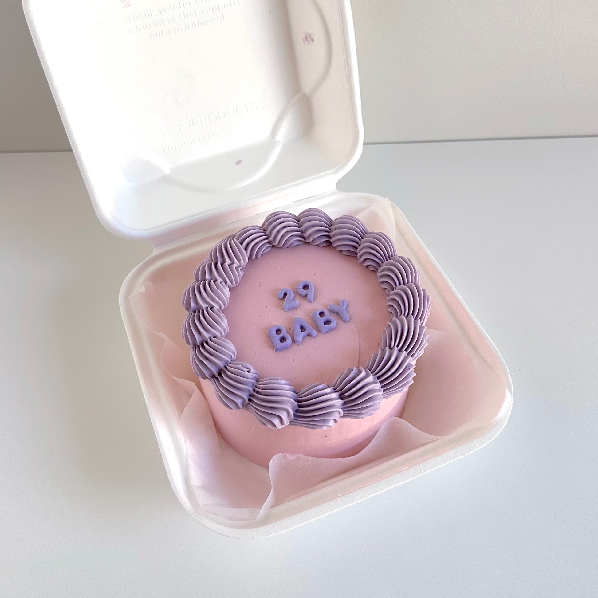 Retro style piping on a 4 inch bento cake. Serves 1-2. Comes packaged in a small lunchbox, tied with ribbon and added candle & spoon.